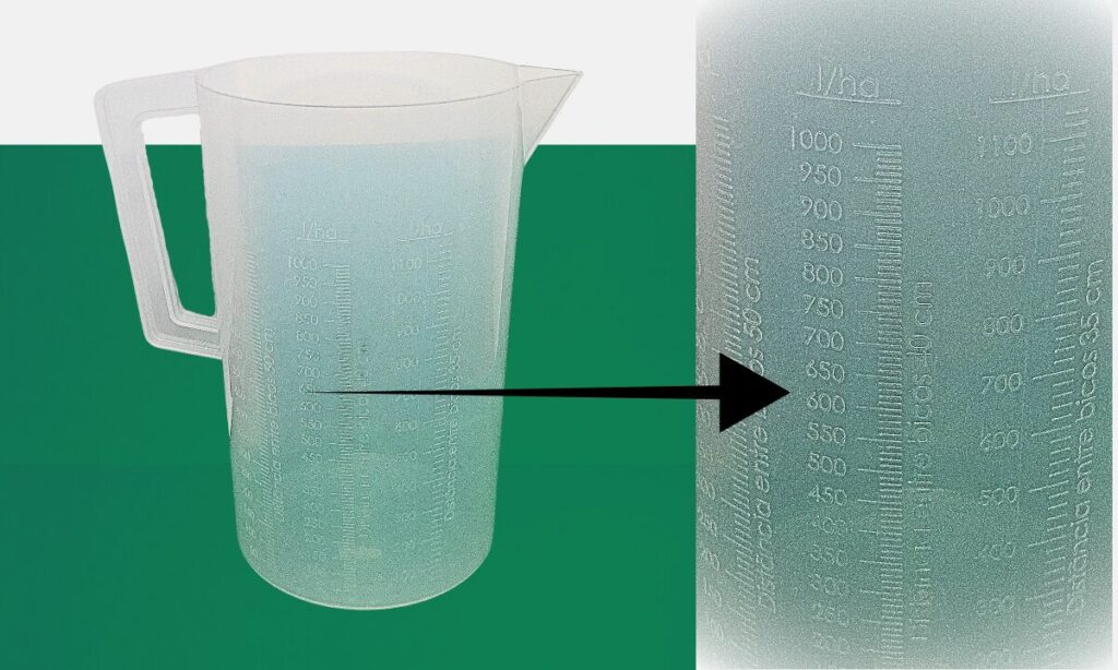 – Escalas de calibração para bicos com distância de 35 cm, 40 cm e 50 cm