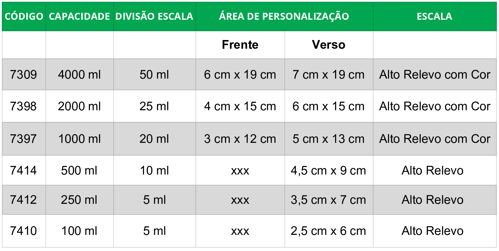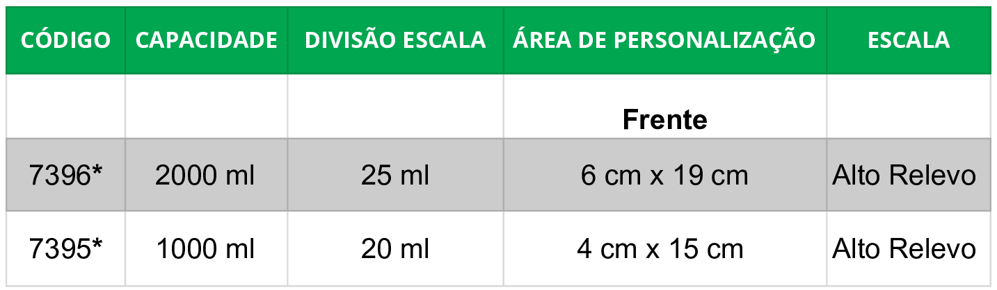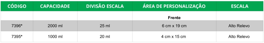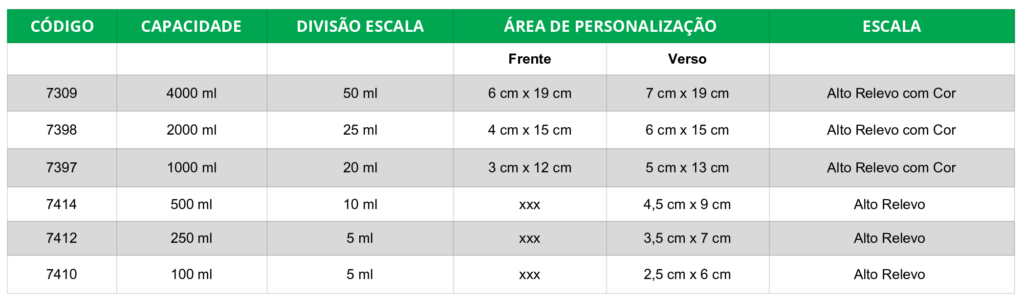 * Escala de calibração para bicos de distância 35 cm, 40 cm e 50 cm.